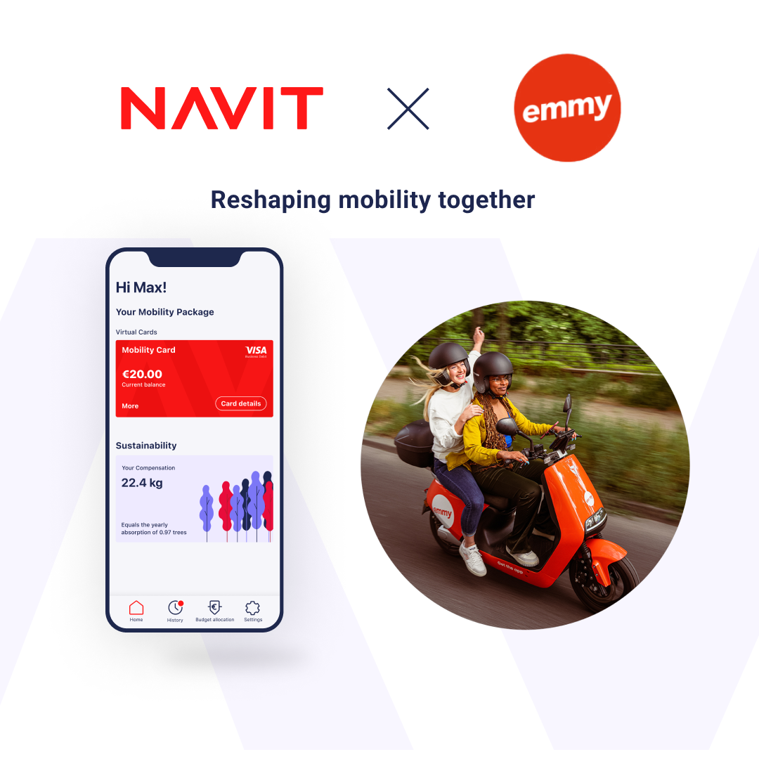 Gute Nachrichten für Mitarbeitende, deren Unternehmen Navit für die betriebliche Mobilität nutzen! Du kannst dein Mobilitätsbudget jetzt für Mopeds von emmy verwenden.