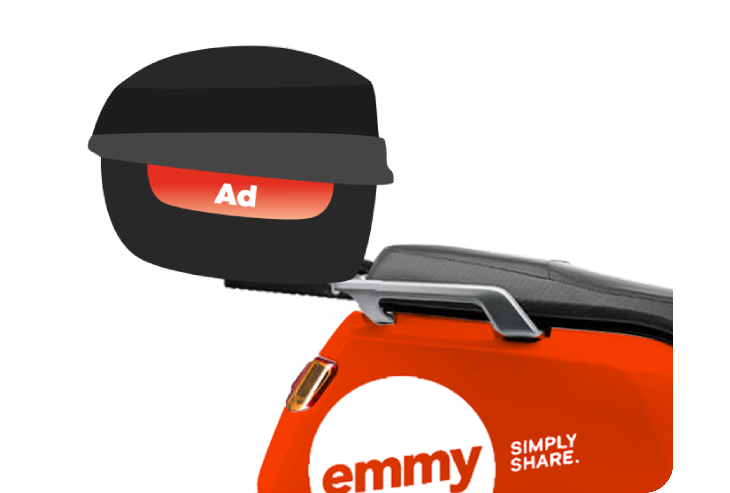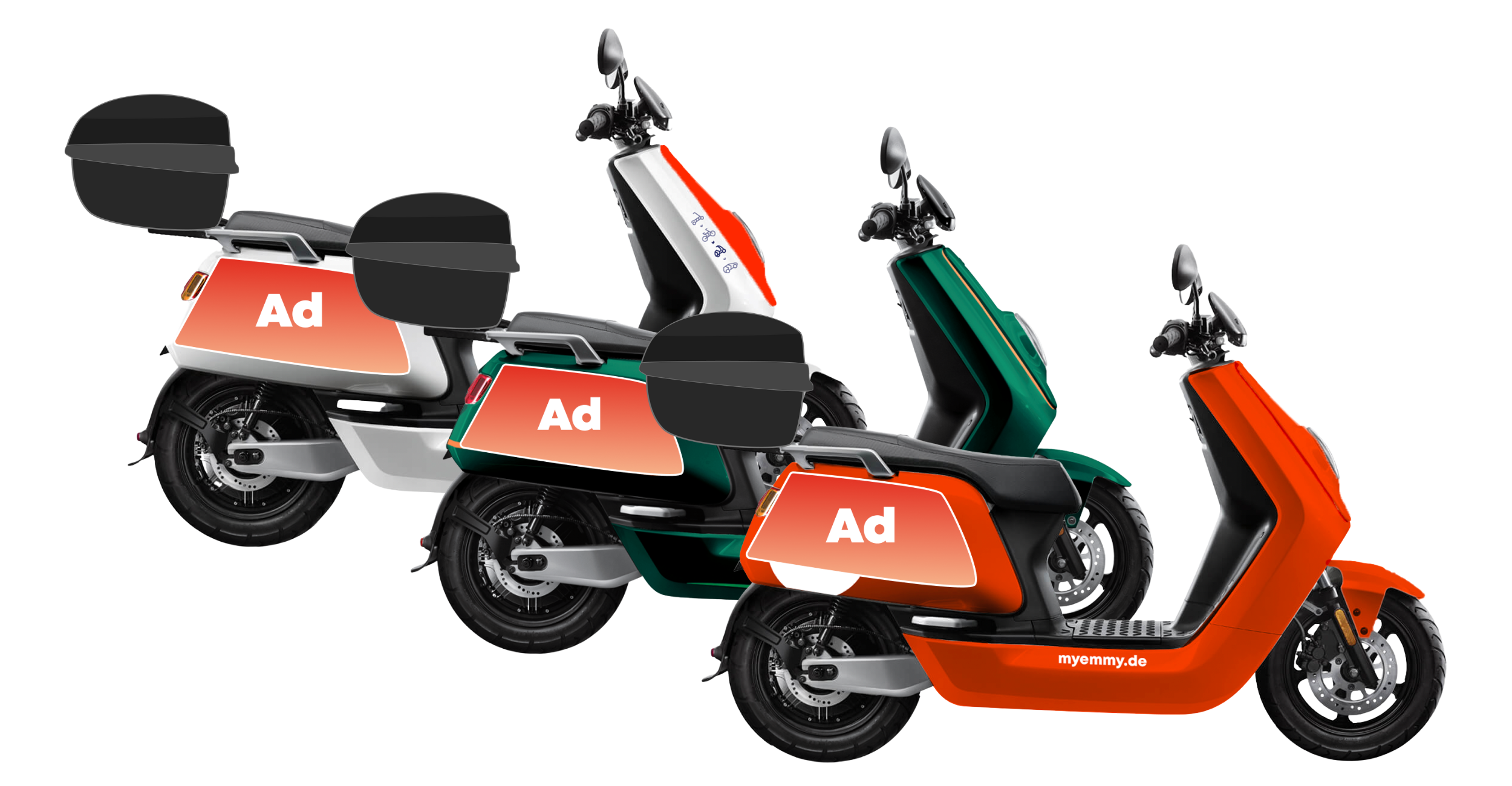 Setze mit emmy neue Maßstäbe in der Außenwerbung und sorg mit deiner Kampagne auf unseren Mopeds für echte Aufmerksamkeit – bei unseren Nutzer*innen und jedem, der sie in der Stadt sieht.